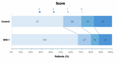 此外,研究还观察到胃角部位病变在48周时的效应,提示了WW-1对胃黏膜癌前病变具有持续的保护作用。次要指标方面,WW-1对肠上皮化生评分的显著改善,提升了血清胃蛋白酶原(PGI, PGII),从分泌功能角度提示了胃黏膜的修复。两组在不良事件发生率上无显著差异。