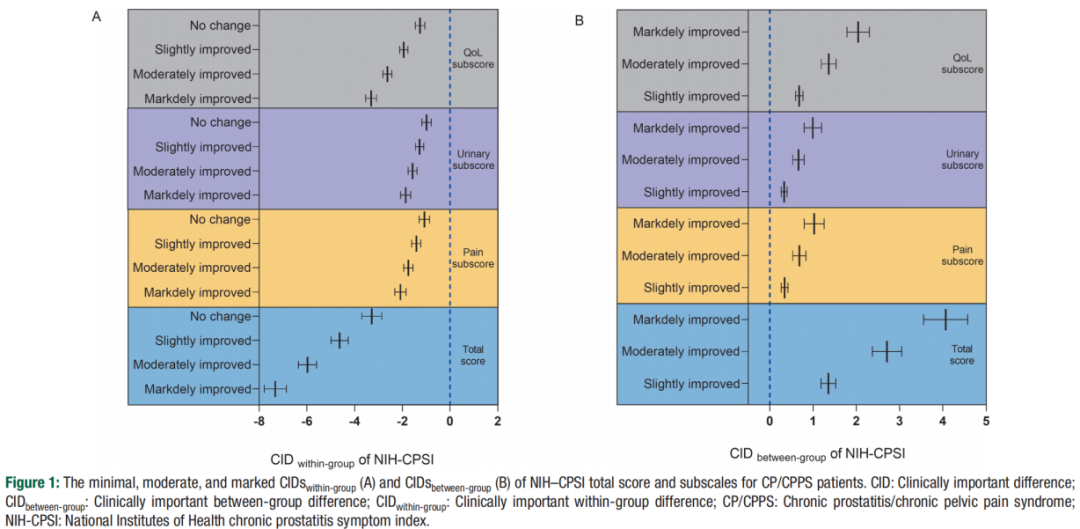 研究利用一项纳入了440名慢性盆腔疼痛综合征的随机对照试验数据,通过NIH-CPSI量表与“患者整体印象(PGI-C)”数据相锚定,应用线性混合效应模型进行了估算。研究结果显示,NIH-CPSI总分下降4.6、6.0和7.3分,分别对应最小、中度和显著改善。此外,研究还估计了组间差异的“净获益”,在剔除安慰剂效应后,与对照组相比产生1.4、2.7和4.1分的差异代表了最小、中度和显著的“净获益”。这种细化的分类标准,为临床评估提供了比传统的二元模型更为精准的解释工具。