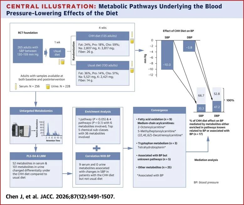 该研究通过高质量的随机对照饲食试验、系统的代谢组学分析以及严谨科学的统计学方法,揭示了CHH膳食降压效应的潜在代谢机制,构建了临床效应机制研究的范本,为未来其他临床干预效应研究开展机制性探索与验证提供了可借鉴的研究框架。